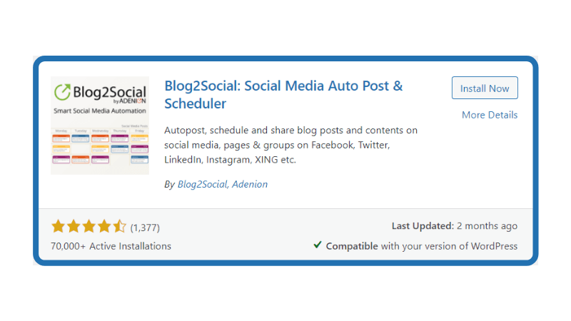 This premium autoblogging tool is mostly centered around social media-based blog posts. Indeed, the WordPress plugin of Blog2Social connects with the users’ social media accounts. Later, it shares the posts across all supported platforms automatically and simultaneously.