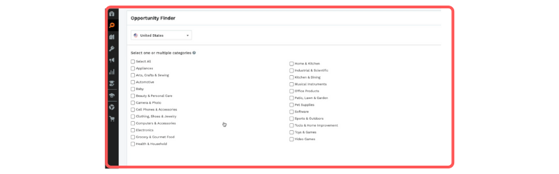 • Lets you know your products – The first step of selling is knowing what you are going to sell. This is where the product research feature of the tool comes into action. It will help you analyze the product with maximum profit. All you have to do is select the product database and set your filter based on product category and countries, and then it will generate the list of items you can sell on the platform. Other than this, you can take advantage of niche hunters that will help you shortlist the list of products based on your niche.