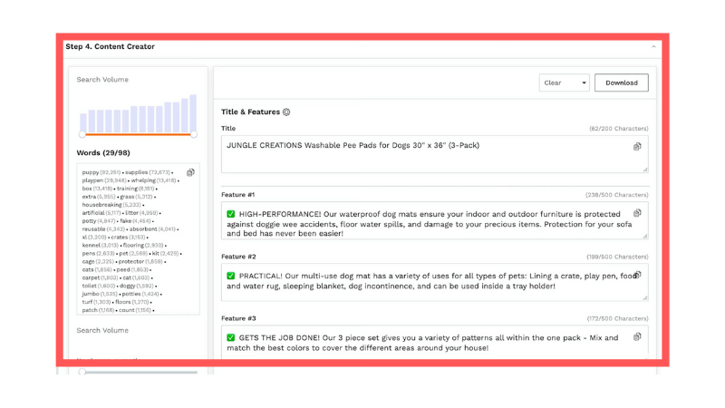 The listing builder feature of the tool helps you with building an optimized product listing that can enhance the chance of ranking your listings on the Amazon marketplace.